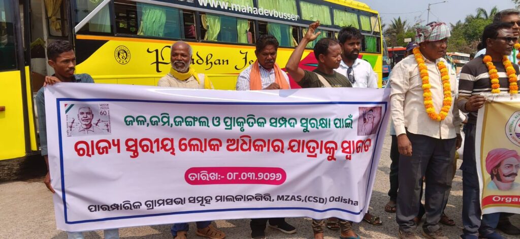 ମାଲକାନଗିରି, ୮ା୩ (ବିକଳ୍ପ): ଚଉଦଟି ଜିଲ୍ଲା ଅତିକ୍ରମ କରି ପ୍ରାକୃତିକ ସମ୍ପଦର ସୁରକ୍ଷା ନିମନ୍ତେ ଆରମ୍ଭ ହୋଇଥିବା ଲୋକ ଅଧିକାର ଯାତ୍ରା ଆଜି ମାଲକାନଗିରି ବସଷ୍ଟାଣ୍ଡରେ ପହଞ୍ଚିଥିଲା। ମାଲକାନଗିରି ଆଦିବାସୀ ସଂଘ, ସିଏସଡି ଓ ନାଗରିକ ସମାଜ ପକ୍ଷରୁ ଏହି ଯାତ୍ରାକୁ ସ୍ଵାଗତ କରାଯାଇଥିଲା। ତାର୍ଲାକୋଟା ଠାରେ ଆୟୋଜିତ ସାଧାରଣ ସଭାରେ ବିଶିଷ୍ଟ ପରିବେଶବିତ୍ ତଥା ଗ୍ରୀନ ନୋବେଲ ବିଜେତା ପ୍ରଫୁଲ୍ଲ ସାମନ୍ତରା କହିଲେ ଯେ, ମାଲକାନଗିରି ଜିଲ୍ଲାର ଜଙ୍ଗଲ ଓ ନଦୀକୁ ଶେଷ କରିଦେବା ନିମନ୍ତେ ପ୍ରକ୍ରିୟା ଆରମ୍ଭ ହୋଇଯାଇଛି। ଏଥିପାଇଁ ଆଦାନୀ ଓ ଡାଲମିଆ କମ୍ପାନୀମାନଙ୍କୁ ଆଣି ଓସ୍କାଲବାଗ ଓ କତାମେଟା ଜଙ୍ଗଲରେ ଚୂନପଥର ଖଣି ଖନନ ପାଇଁ ଲିଜ୍ ପ୍ରଦାନ କରାଯାଇଛି। ଏହାଦ୍ଵାରା ସାବେରୀ ନଦୀର ବ୍ୟାପକ କ୍ଷୟକ୍ଷତି ହେବା ସହ ଜିଲ୍ଲାର ହଜାର ହଜାର ଲୋକଙ୍କ ଜୀବିକା ଛଡ଼ାଇ ନେବ।